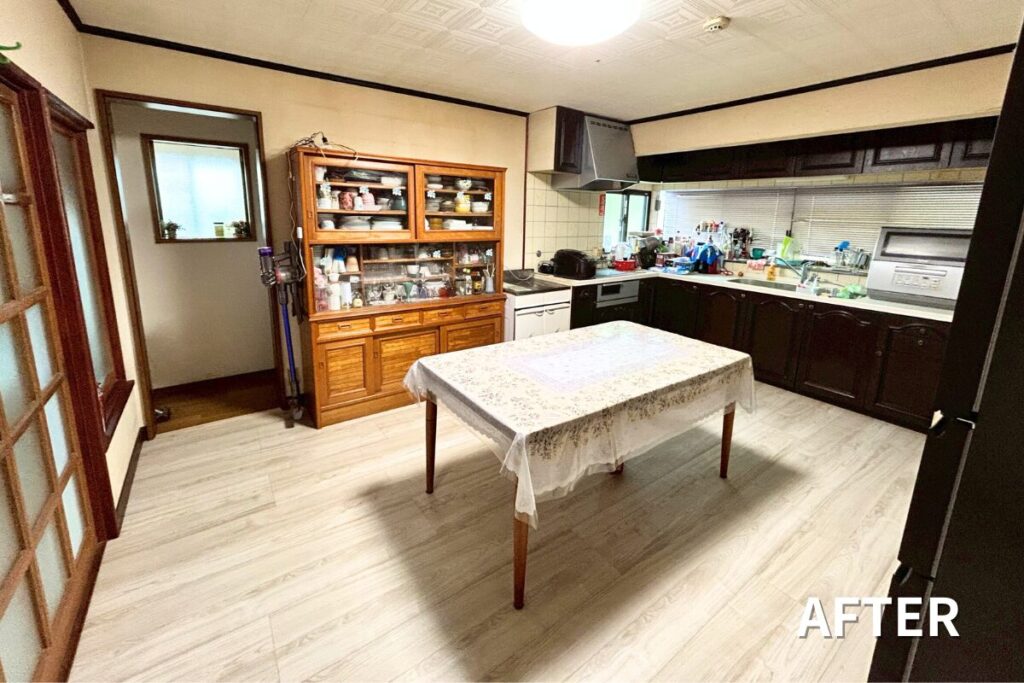 長年の使用で生じた床の傾きも、可能な範囲でしっかりと調整。 見た目だけでなく、歩いたときの心地よさも改善します。