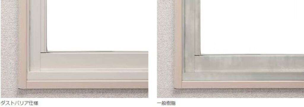 さらに注目したいのが、LIXIL独自の「ダストバリア技術」。 『ダストバリア』は、静電気の帯電を防ぐ素材を配合した新しいタイプの樹脂です。この技術により、窓ガラスにホコリや花粉が付着しにくくなるため、掃除の手間も軽減。 室内環境を清潔に保ちやすくなるのも、うれしいポイントです。