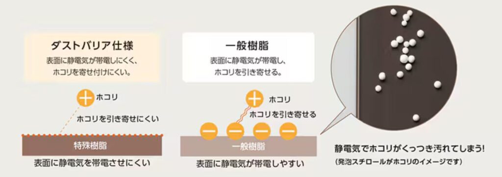 ダストバリア技術でホコリも花粉もつきにくく!お掃除ラクラク