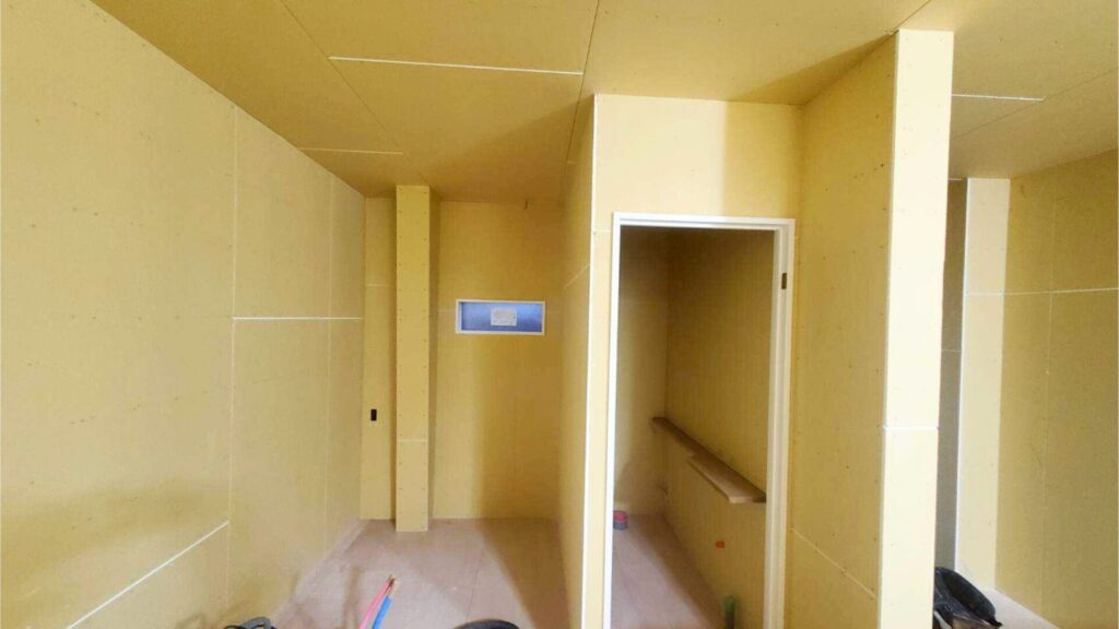その上から一枚一枚、石膏ボードを貼っていきます。