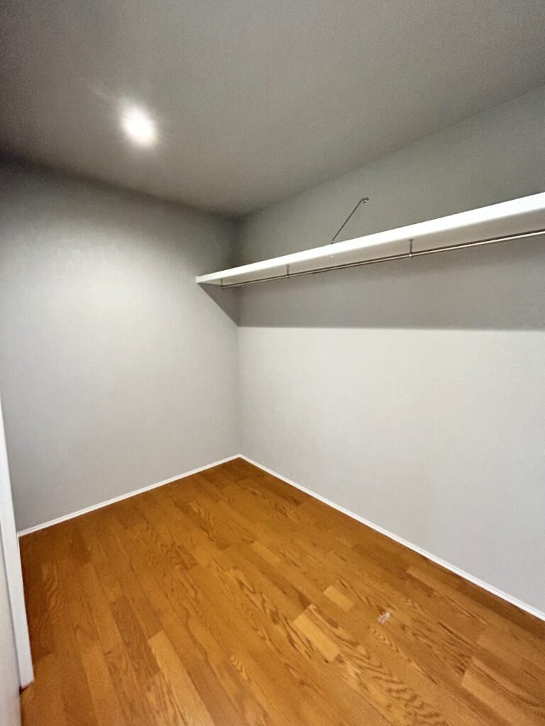 さらに奥の部屋にはクローゼットもあり、乾いた衣類をそのままできる動線に。