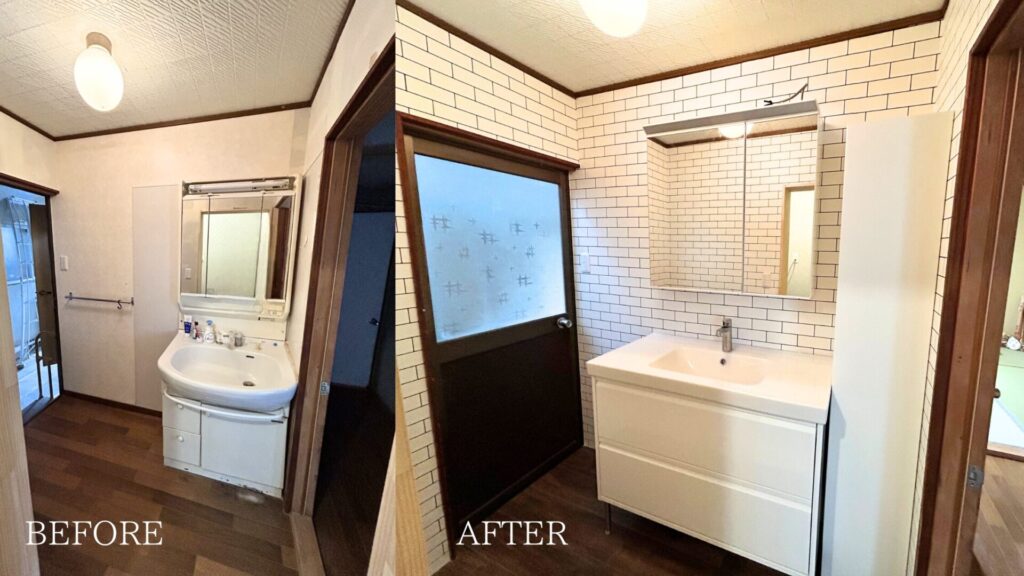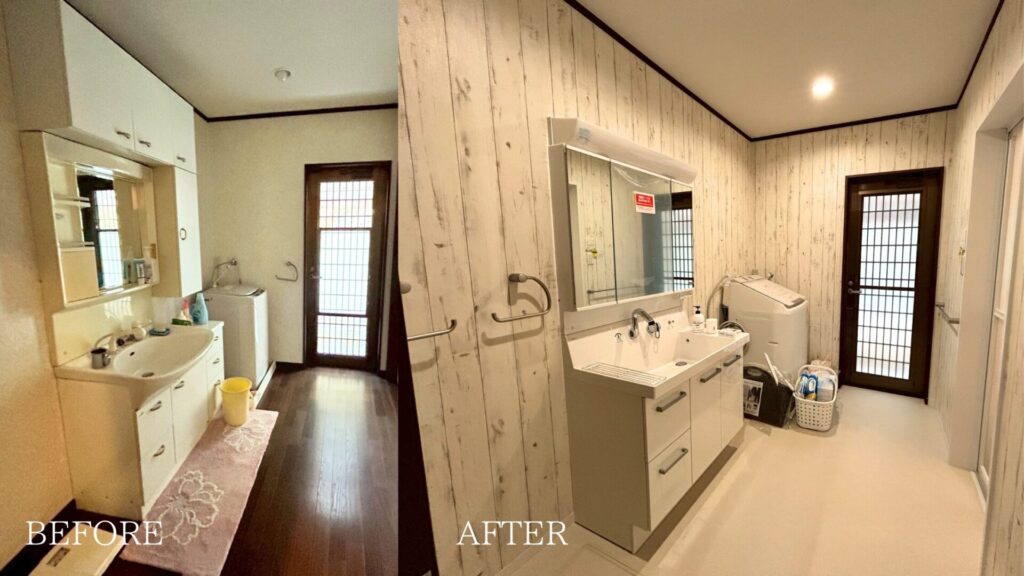 “無機質”から“あたたかい”へ。洗面所を彩るクロスリフォーム